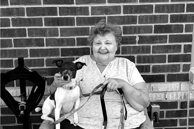 Cynthia lives on a fixed income and federal housing project and wants to do everything she can to give Mabel a happy life. Before training, Mabel caused a lot of stress to Cynthia’s life. Mabel has separation anxiety and barks whenever Cynthia leaves. She reacts poorly on leash when she passes dogs and jumps on house guests. In training, we are going to focus on raising Mabel’s confidence through obedience so she responds better in those tough situations, and also work on manners in the home and on leash!
